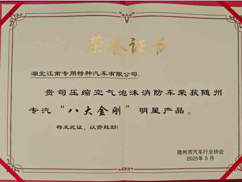 熱烈祝賀公司壓縮空氣泡沫消防車榮獲隨州專汽“八大金剛”明星產品。