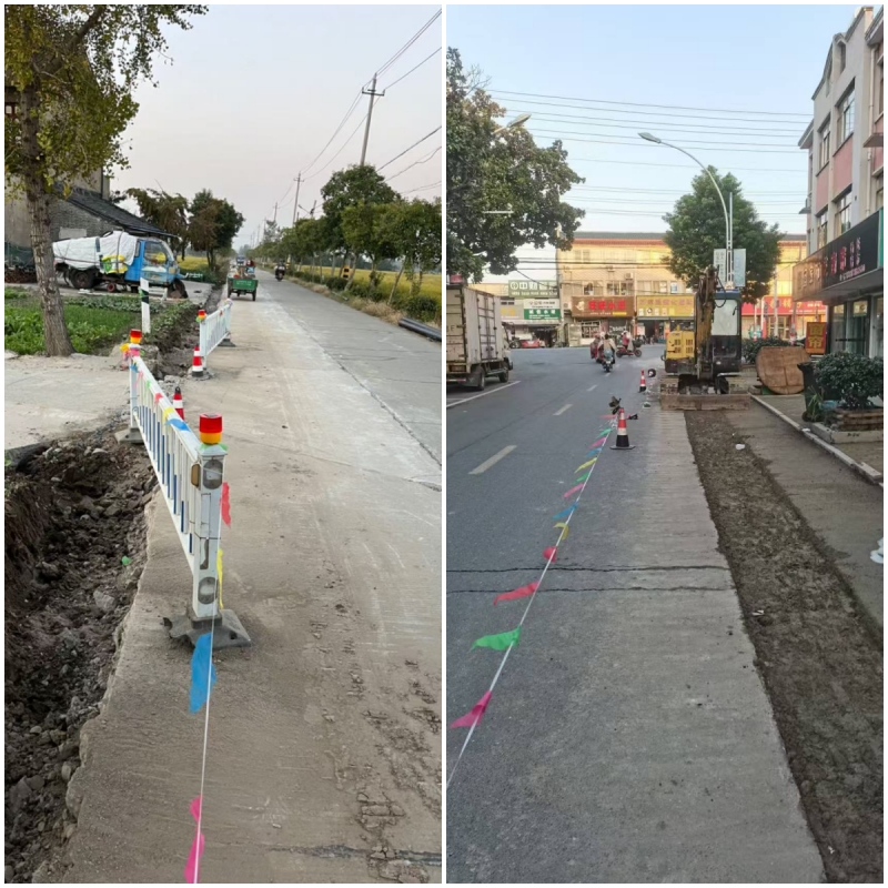 此次宜陵專項債改造區域管網為原小水廠鋪設的,管網使用年限長,部分管齡超20年,有鐵管、PVC管、PPR管等,管網材質參差不齊,且幾家小水廠未能統一規劃管線走線,導致管網末梢水壓低,存在發現漏點后閥門關閉無法斷水維修等困難。2024年公司前期投入大量人力和物力走現場、測繪、拿方案,最終決定將該區域老管網全部廢棄,鋪設DN200和DN150球墨鑄鐵管作為供水主管網與區域供水管網相接,進村入戶支管網采用DN110-DN25PE管鋪設。